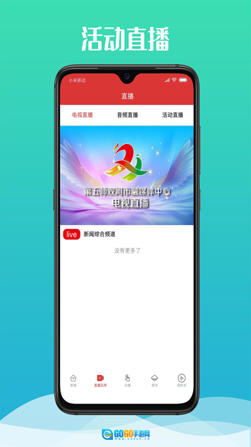 点击进入直播工作界面后,不仅能实时观看活动直播,还能看到电视直播和收听音频直播内容。