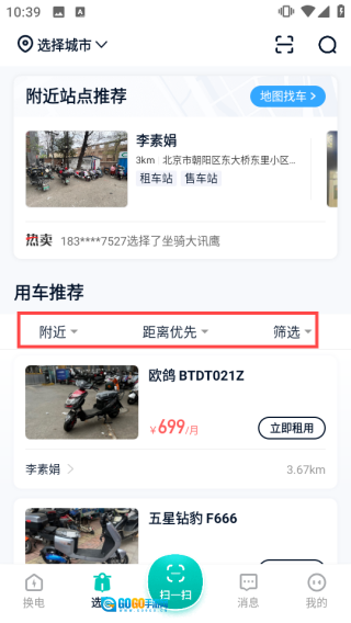 进入选车界面后,借助【附近】【距离优先】【筛选】等功能,能够快速找到合适的车辆。