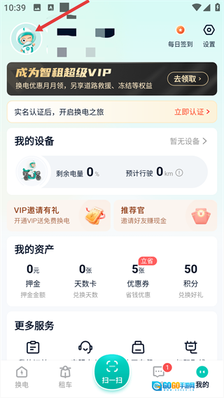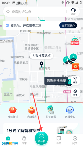 在地换电界面,点击【扫一扫】,即可扫码用车。