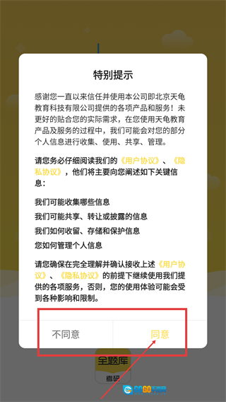 请您仔细阅读【用户协议】和【隐私协议】的条款内容,在确认无误后,点击弹窗内的【同意】按钮,这样就能继续使用本软件提供的所有服务了。
