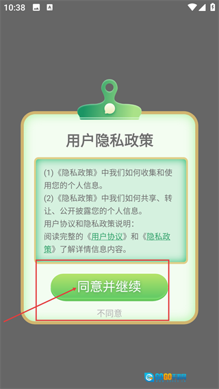 进入软件后,需先阅读【用户隐私政策】和【用户协议】的具体内容,在确认无误后点击【同意并继续】按钮,方可进入软件主界面进行后续的相关操作。