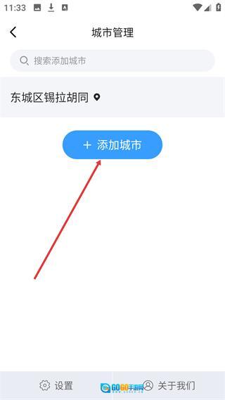 进入城市管理界面后,点击【+添加城市】按钮,就能进入城市选择的操作页面。