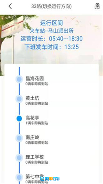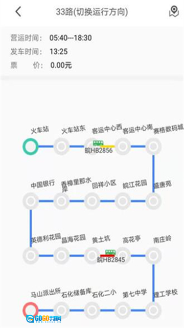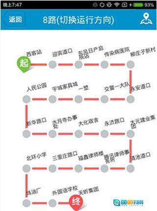当运行方向完成切换后,系统会展示从起点到终点之间所有途经站点的详细信息供用户查看。