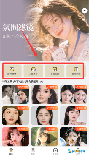 这款应用的人像编辑功能十分细致且全面,配备了一键美颜、更换刘海、精修五官等实用工具,能够让用户从多个维度对脸部细节展开个性化的调整。