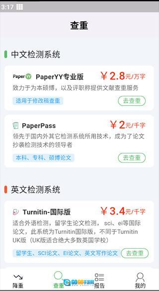 首先根据自己的论文类型选择对应的查重系统;