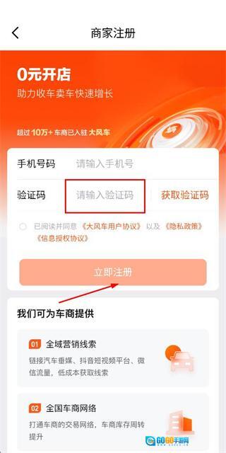 在账号注册页面填写验证码,勾选相关协议后,点击“立即注册”按钮即可完成注册流程。