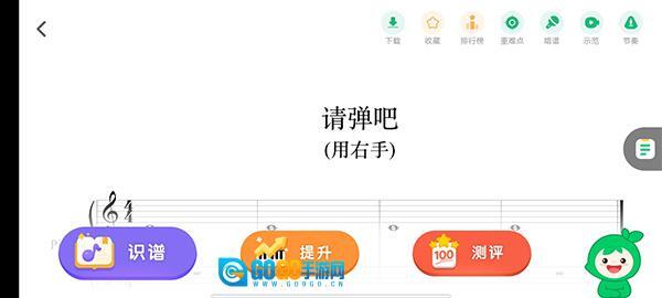 请用你的右手精准辨认每一个音符,小叶子会一直陪在你身边,帮你把弹错的地方都改过来。