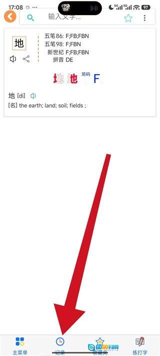 查询结束后,点击底部的记录选项,就能查看之前查询过的汉字历史记录。