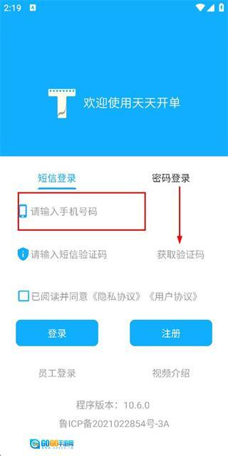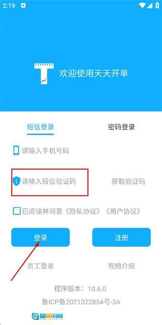 在登录页面输入手机号,勾选相关协议后,点击“获取验证码”按钮。