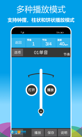 乐器节拍器配备了多种可视化节拍播放器,涵盖钟摆、柱状、饼状等不同样式,用户能够依据个人偏好挑选合适的呈现方式;此外,它还具备边播放边录制的功能,这对乐器爱好者而言十分实用——他们可以在播放节拍的同时自行校准节奏,进而提升演奏水准。