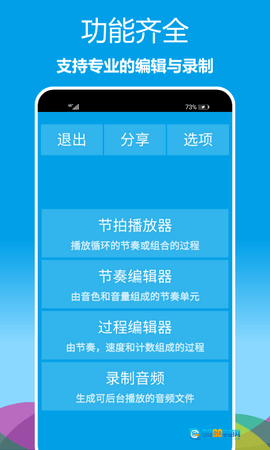 乐器节拍器是一款实用的在线音乐调音节奏应用软件,核心目标是为用户打造专业且灵活的定制化节奏打拍体验。借助的节奏与过程编辑器,用户能够轻松完成各类个性化的打拍任务。此外,该应用还具备音频录制功能,支持用户依据过程文件生成对应的音频文件。这些生成的音频文件可在后台直接播放,无需额外打开播放界面,极大提升了使用的便捷性。
