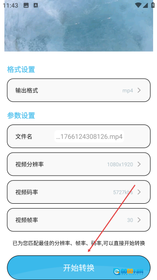 在设置页面,确认各项参数无误后,点击【开始转换】按钮,就能完成视频格式的转换操作了。