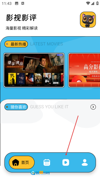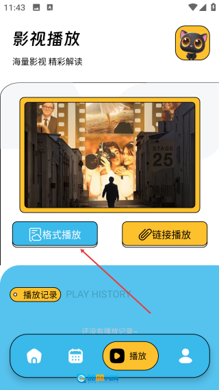 进入首页后,点击页面底部的播放图标,即可进入影视播放功能页面。