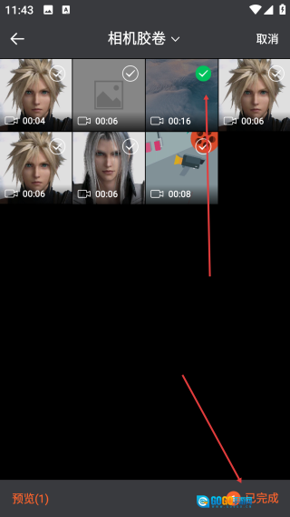 在播放页面,点击【格式播放】选项,即可进入相机胶卷的视频选择界面。