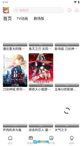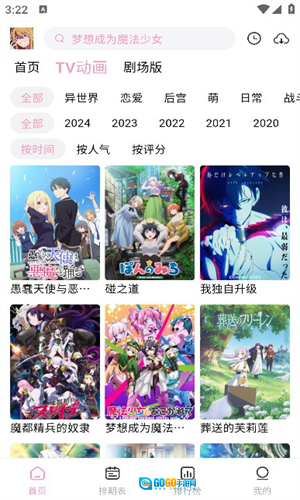 打开应用进入首页后,既能直接浏览最新更新的动漫作品,也可以通过顶部的搜索栏查找想要的番剧。