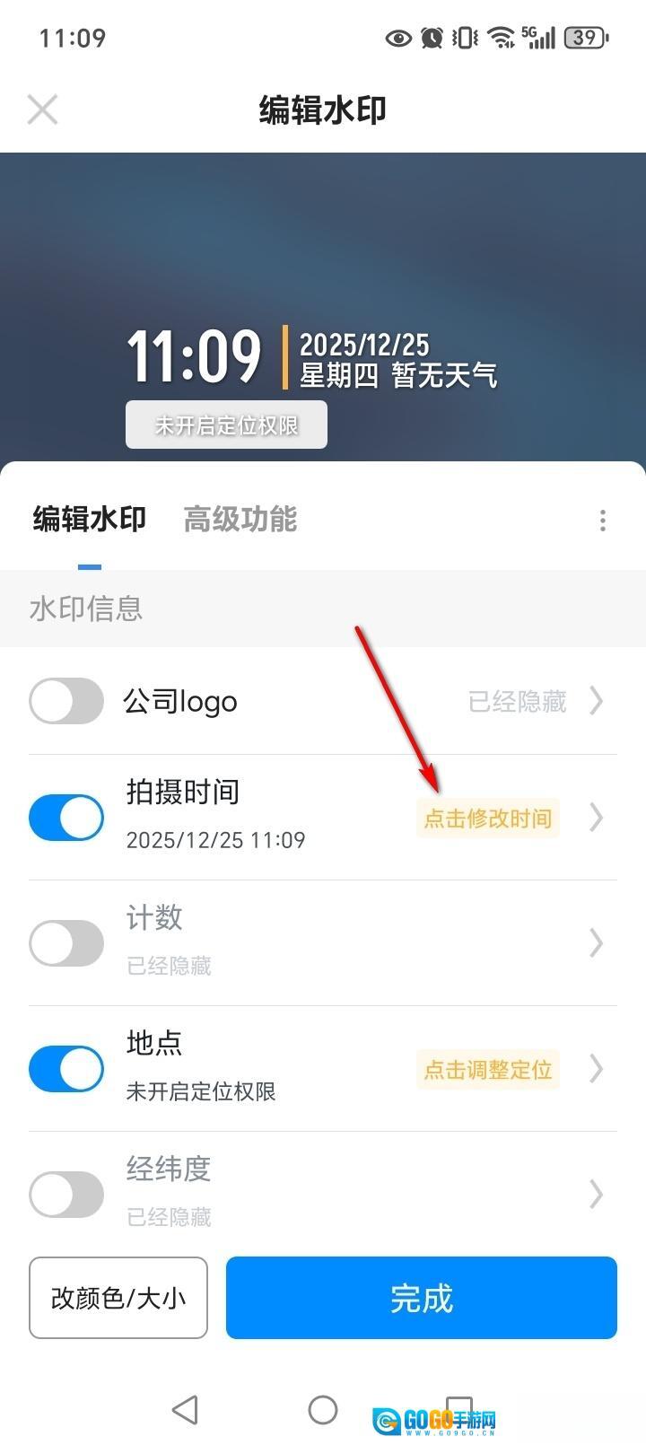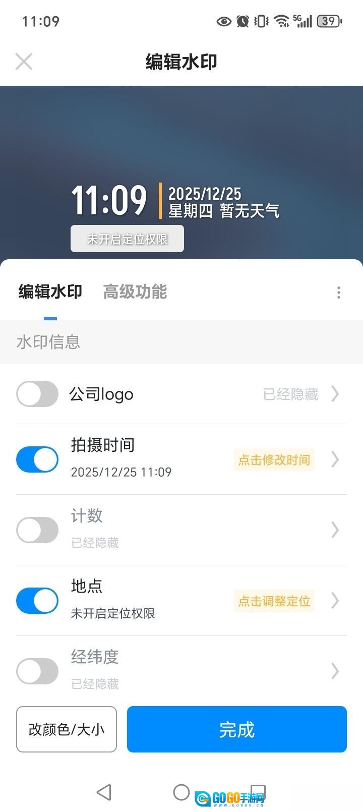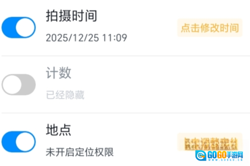 工作水印支持以下功能:水印内容可编辑,可进行地点切换,还能修改经纬度、海拔以及备注信息。
