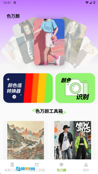 色万颜页面集成了颜色值转换器、颜色识别两大功能,此外还配备了色万颜工具箱。
