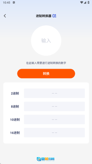 点击进制转换器功能,输入待转换的数字,接着将其转换为二进制、八进制、十进制和十六进制。