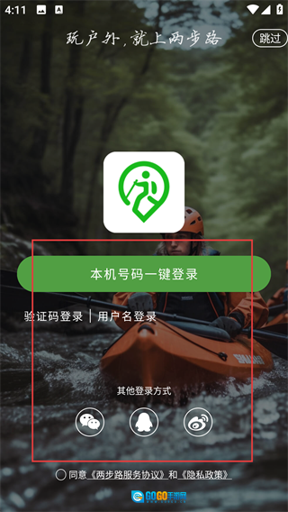 打开两步路户外助手后,你可以选择【本机号码一键登录】或【验证码登录】等方式完成账号登录,当然也能通过其他方式进行登录操作。