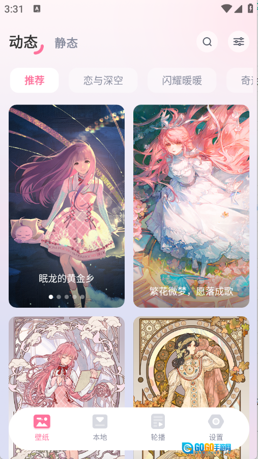 进入首页,这里既有动态壁纸,也有静态壁纸,并且涵盖了各式各样风格类型的壁纸。