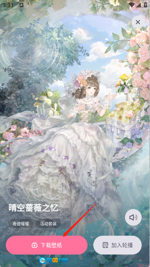 点开喜欢的壁纸资源,点击壁纸即可。