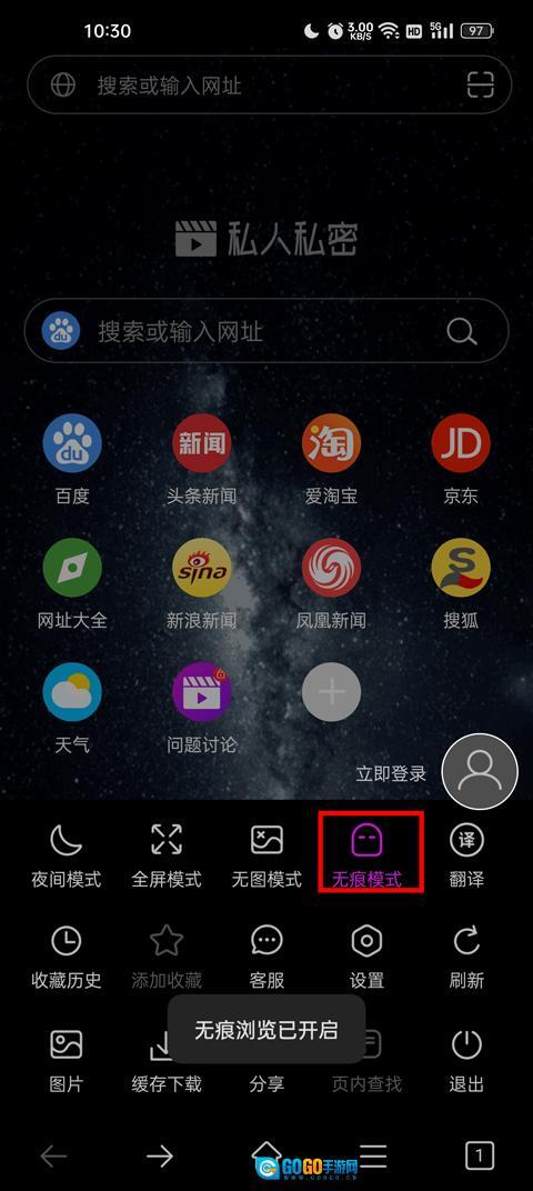 拥有夜间模式、全屏模式、无图模式、无痕游览、随时翻译。