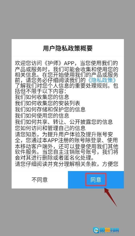 首次打开应用时,需要点击确认弹窗中的协议,同意后才能进入主界面。