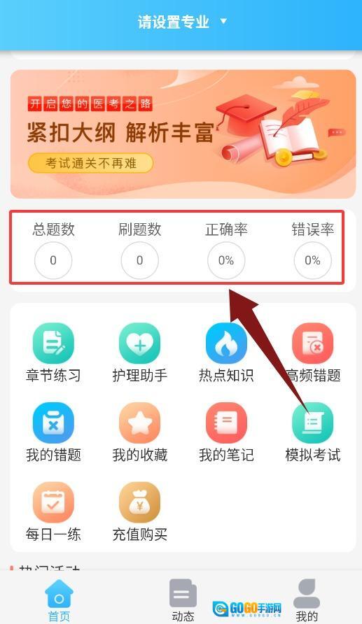 首页会呈现总题数、已完成的刷题量,以及正确率和错误率等相关统计数据。