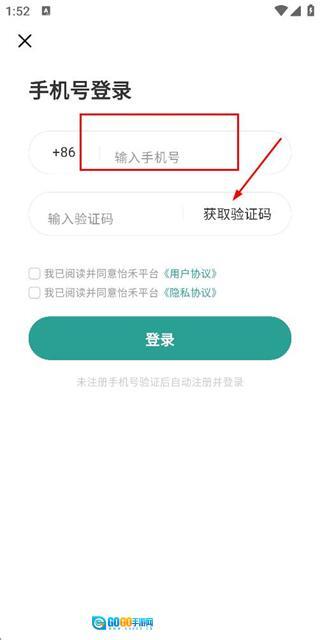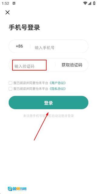 在登录界面输入手机号码,勾选相关协议后,点击“获取验证码”按钮。