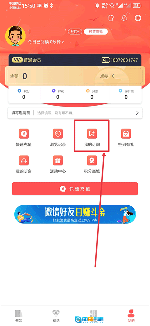 在我的界面中点击我的订阅