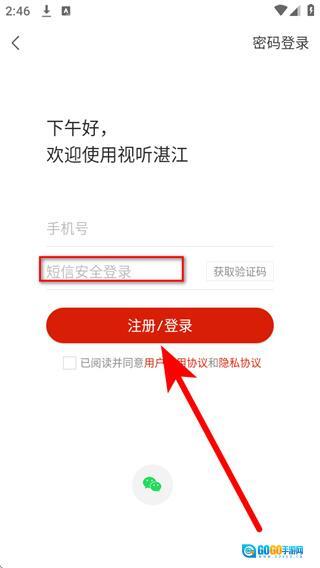 请先填写收到的短信验证码,接着勾选对应的相关协议,最后点击注册登录按钮,即可完成账号登录操作。