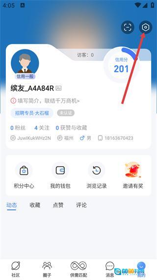 进入个人页面后,点击右上角的设置图标,即可进入包含多项配置选项的设置管理页面。