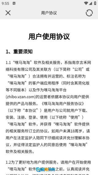点击用户协议,即可进入详细的文字界面,供用户仔细阅读以全面了解相关内容。