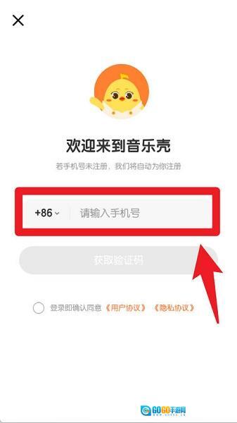 用户在登录界面需输入手机号码并获取验证码,系统将自动完成注册或登录操作。