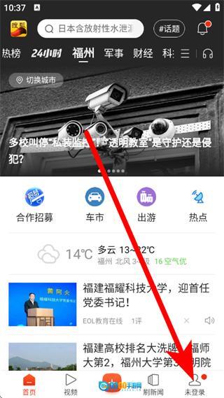 打开搜狐新闻,点击底部未登录,切换至个人页面。