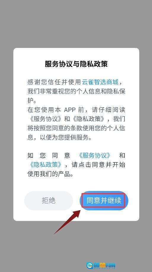 首次打开应用时,需要点击确认弹窗中的协议,同意之后才能进入登录界面。