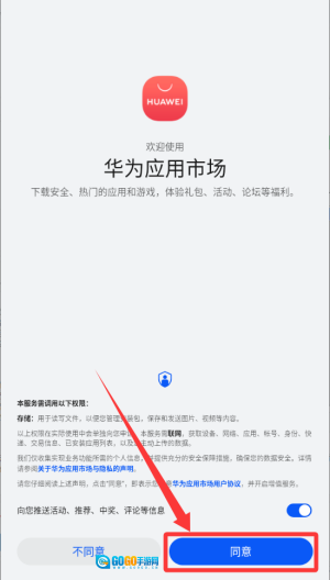 然后再次登录华为市场,点击右下角的同意按钮进入。