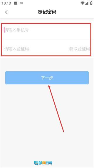 进入【忘记密码】页面后,首先输入【手机号】,点击【获取验证码】并填写收到的验证码,接着点击【下一步】,就能进入密码重置流程了。