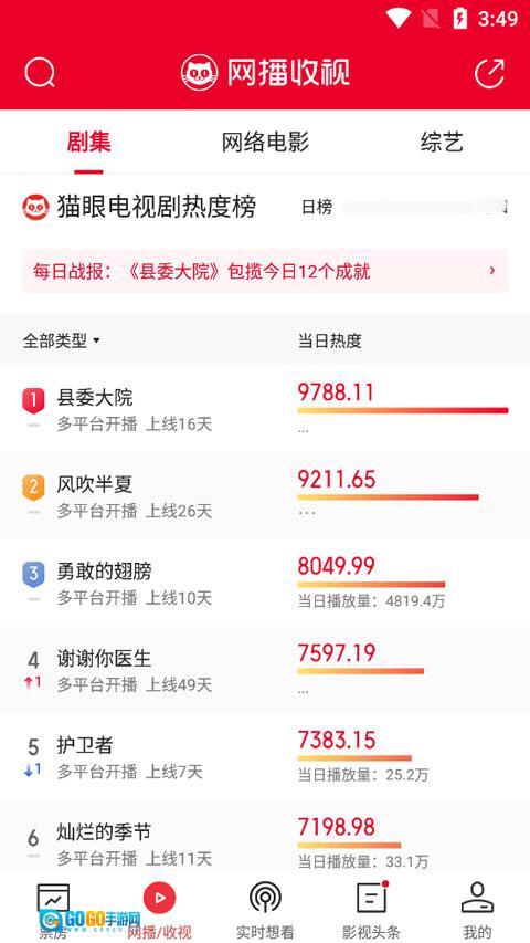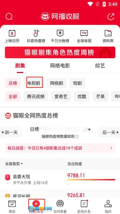 为用户提供电视剧热度榜,同时还提供当日播放量;
