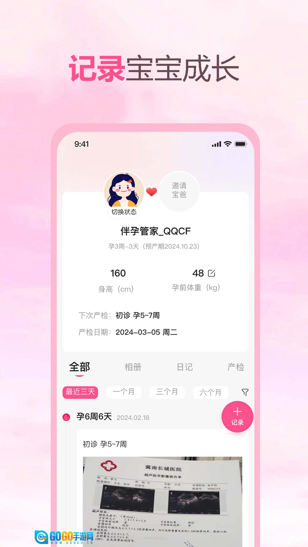 我们提供孕期档案服务,能清晰呈现孕周、预产期、产检日期等孕期基本信息,并帮助记录孕期的核心数据。