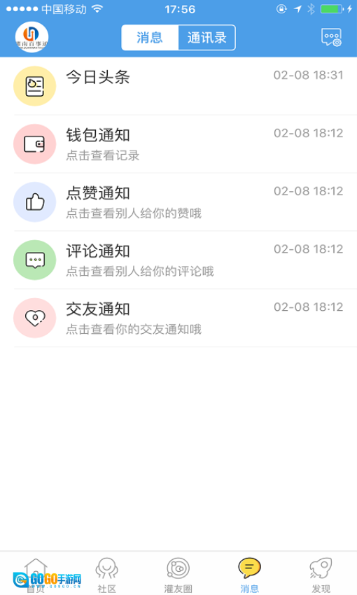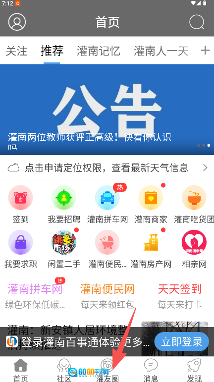 在首页底部“灌友圈”板块浏览图文动态。