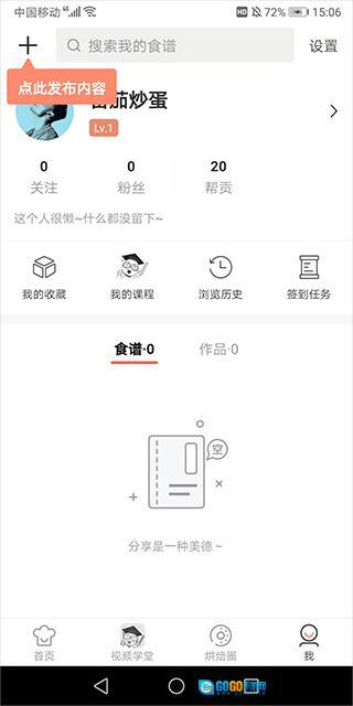 用户依旧是进入应用的【我】页面完成上传操作,区别在于现在需要点击【上传食谱】按钮。