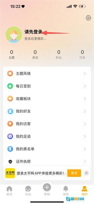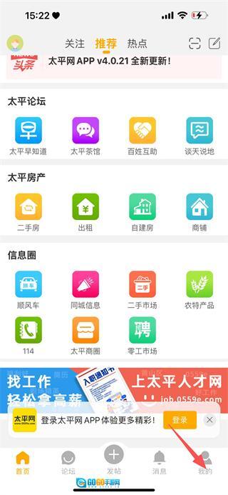 在太平网首页,点击页面底部的“我的”选项,即可进入个人中心页面。