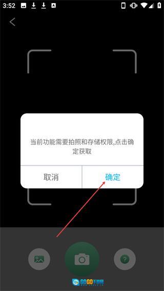 在识别功能的权限请求弹窗里,点击【确定】按钮,就能获得拍照与存储权限,从而使用识别功能。