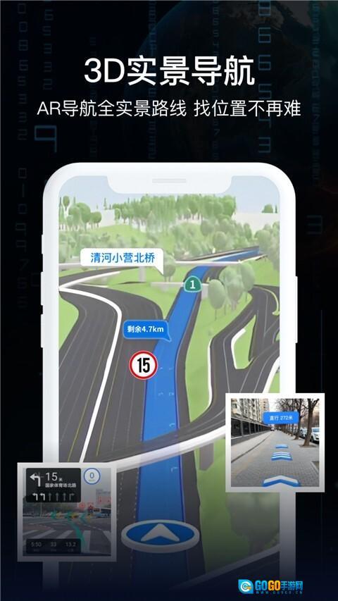 AR实景导航功能:利用摄像头实时获取街道实景画面,将箭头指示、距离信息等导航元素叠加在画面中,清晰呈现转弯指引和目的地标记,帮助用户更轻松地判断行进路线。
