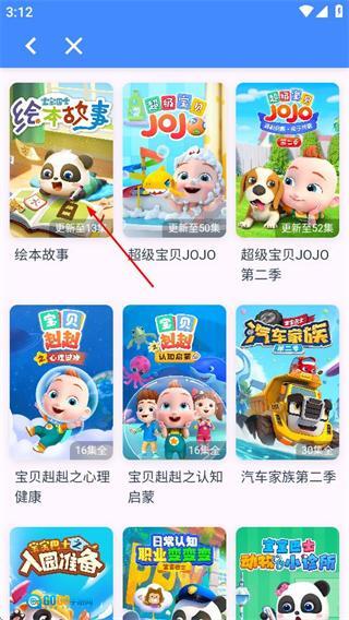 在宝宝巴士页面挑选目标分类选项,进入相应的内容列表页。