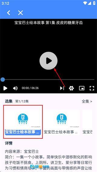 在视频播放页面选定集数,再点击播放按钮,就能观看这部动画片了。