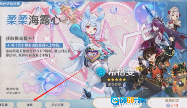 接着进入游戏,点击抽卡页面左下方的“查看详情”,再选择“历史记录”。