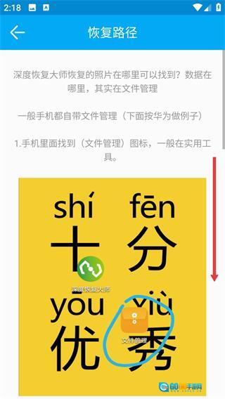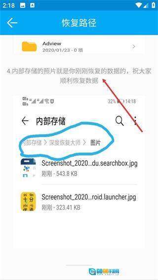 打开【文件管理】,接着依次进入【内部存储】和【深度恢复大师】,就能找到恢复后的各类数据了。