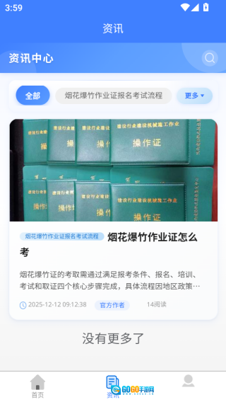 资讯中心会及时推送烟花爆竹作业证的报名流程、考试政策等重要信息,方便用户随时了解考试动态。